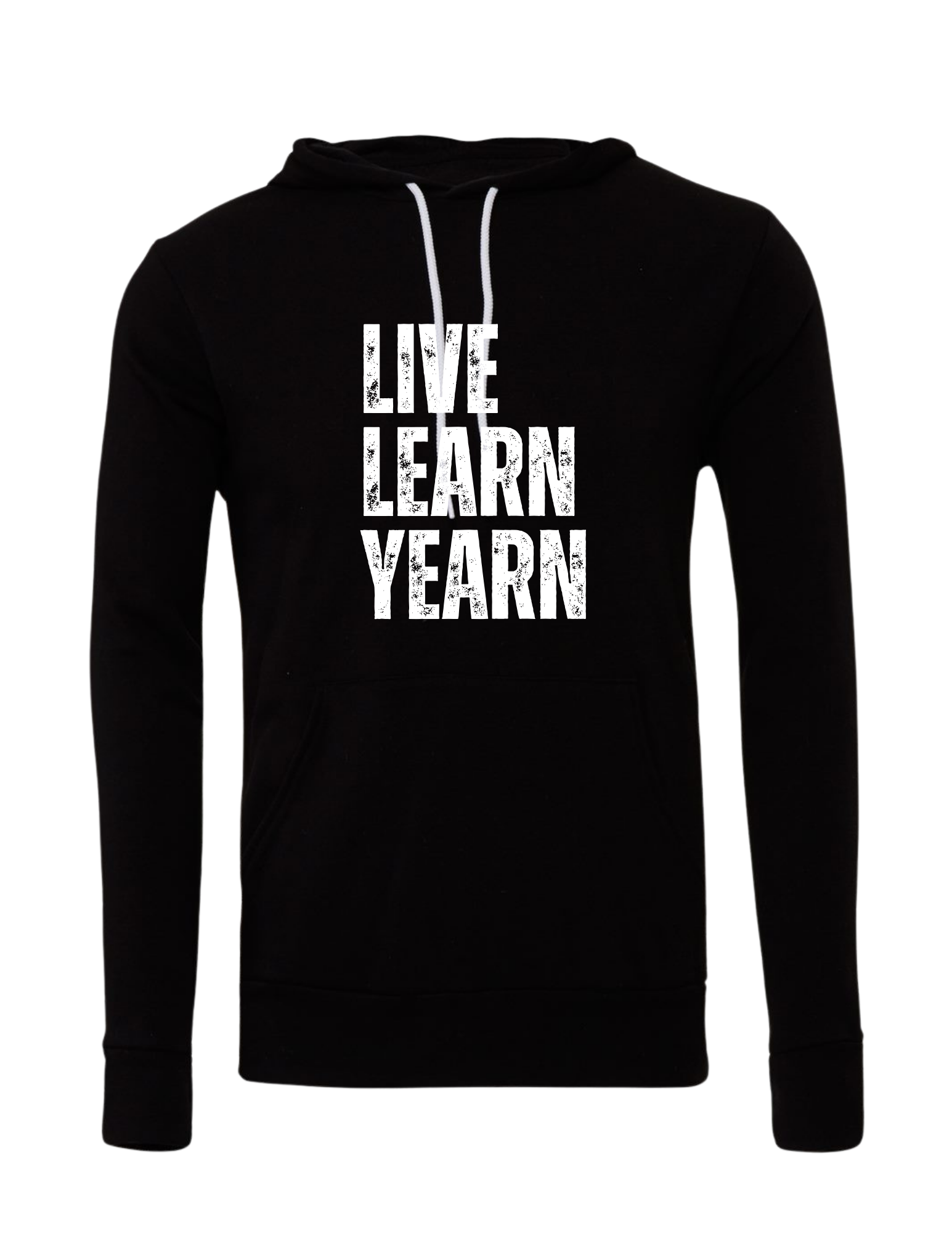 Hoodies are available in red or black with "Live Learn Yearn" on the front